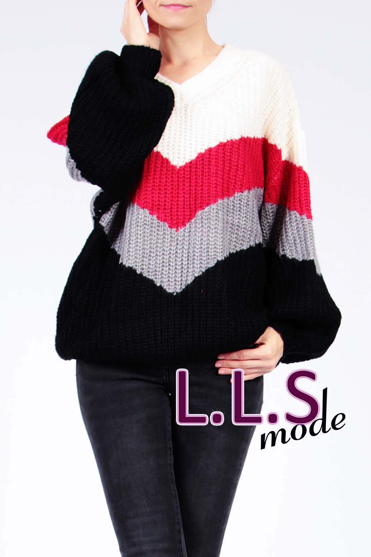 Pull bicolore coll V